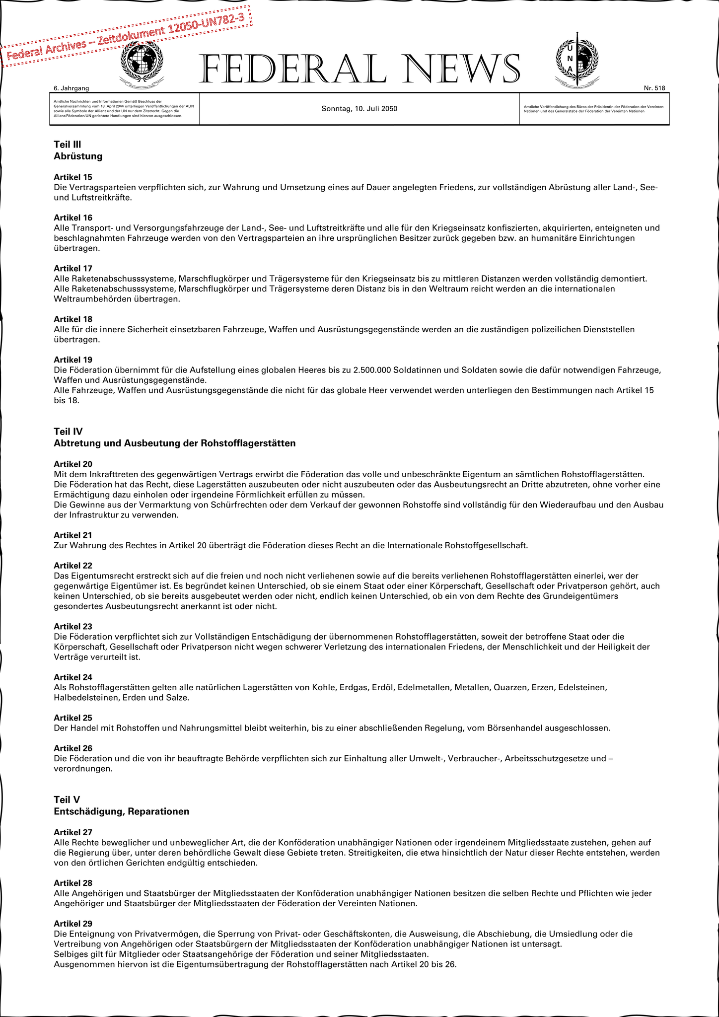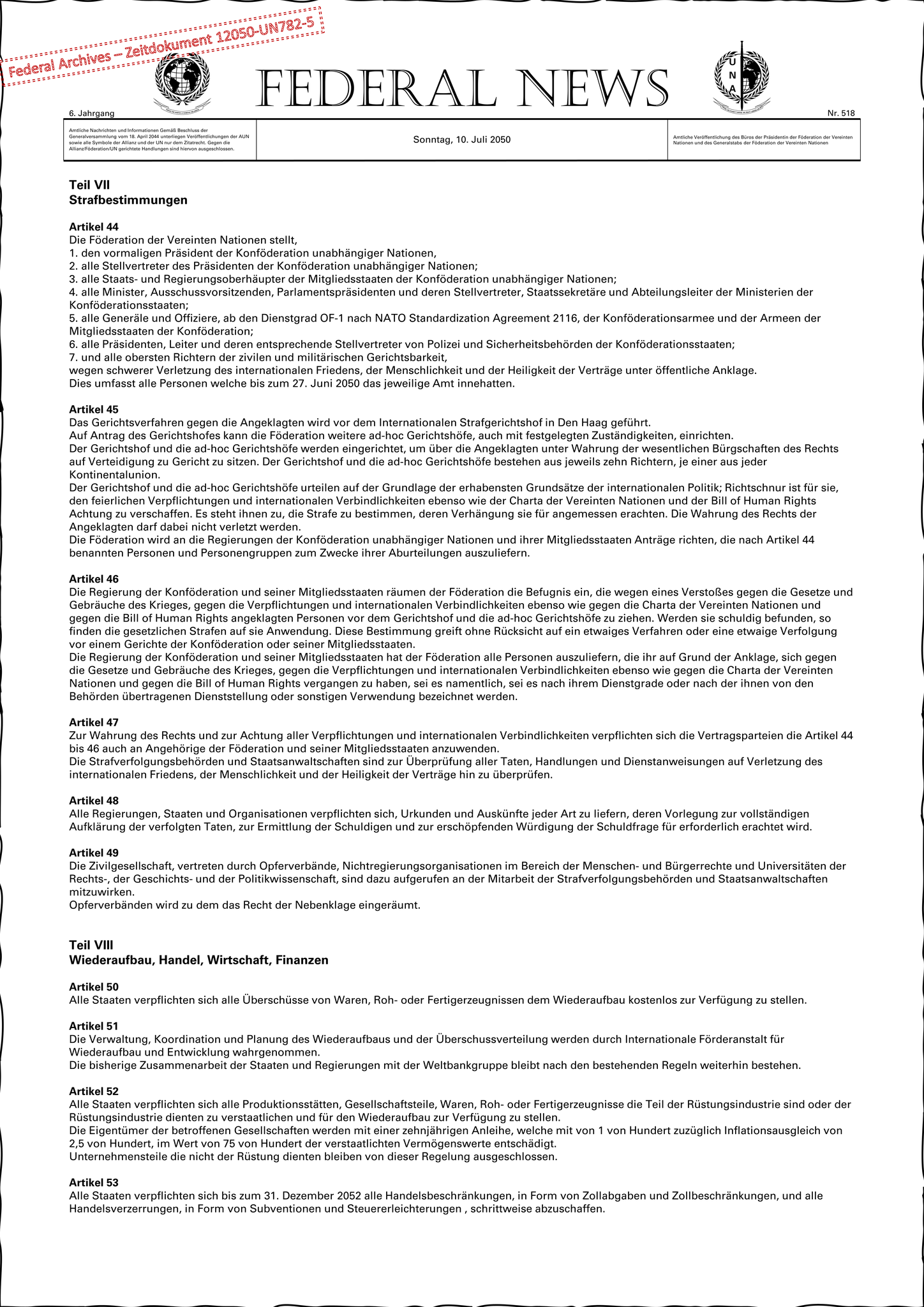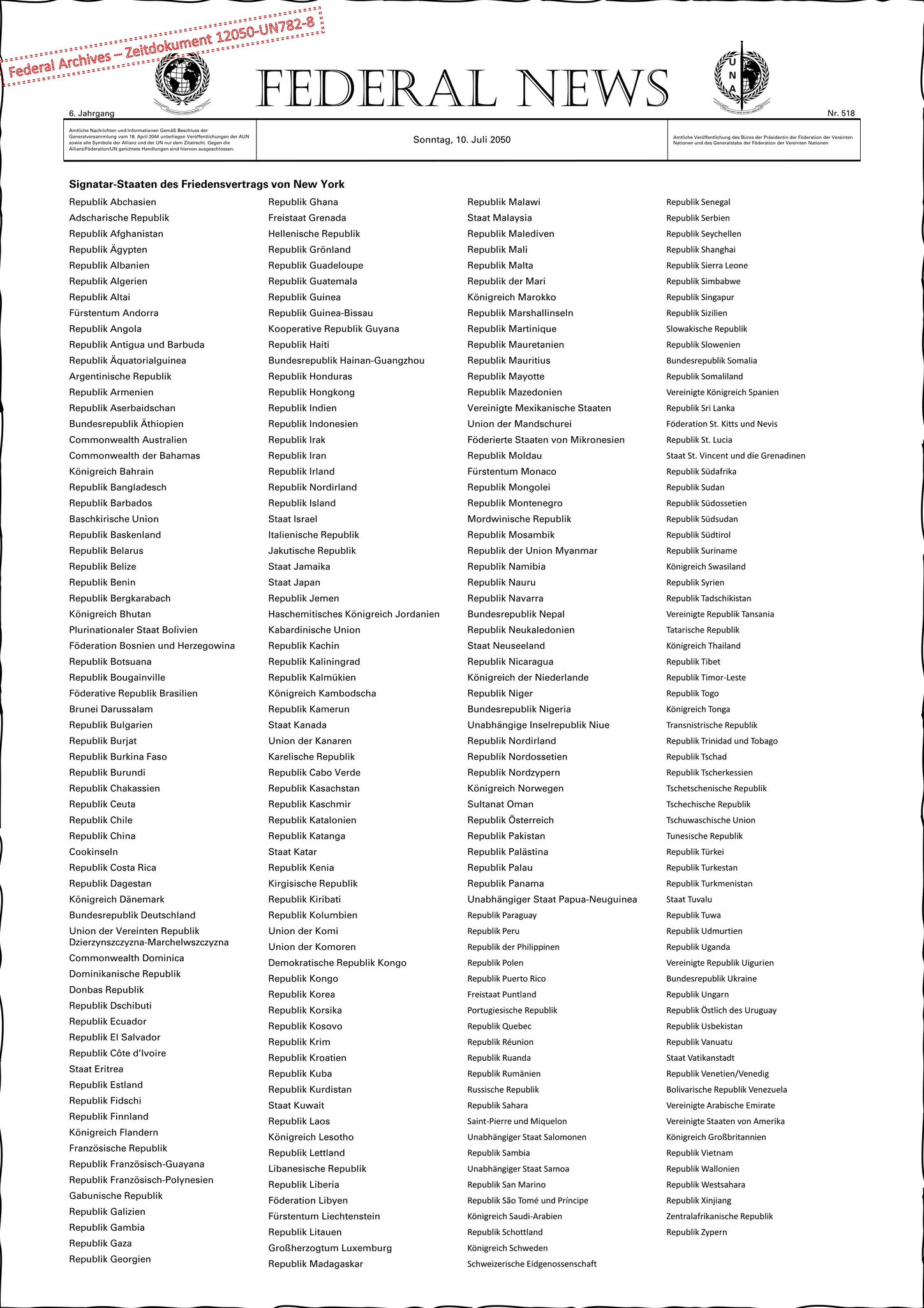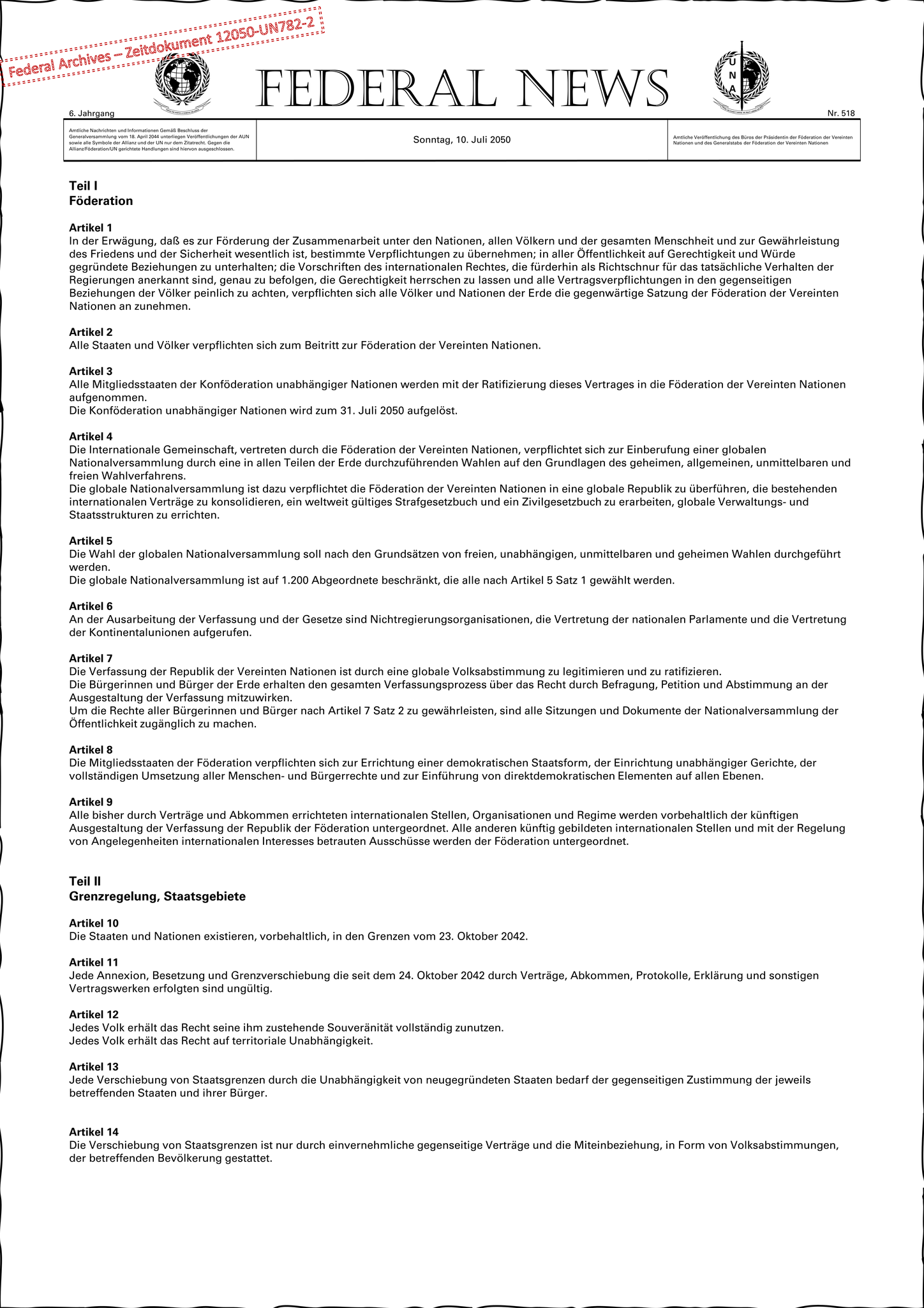 Federal Archives bietet eine Auswahl an Zeitdokumenten, in Form von Bekanntmachungen und Pressemitteilungen, aus den Jahren 2042 bis 2111.