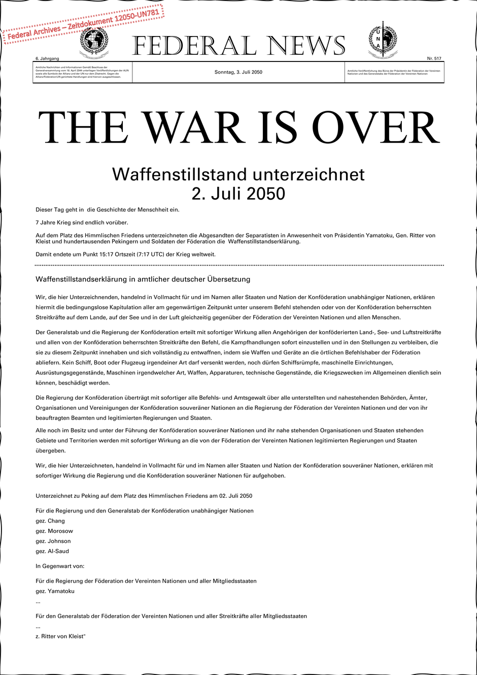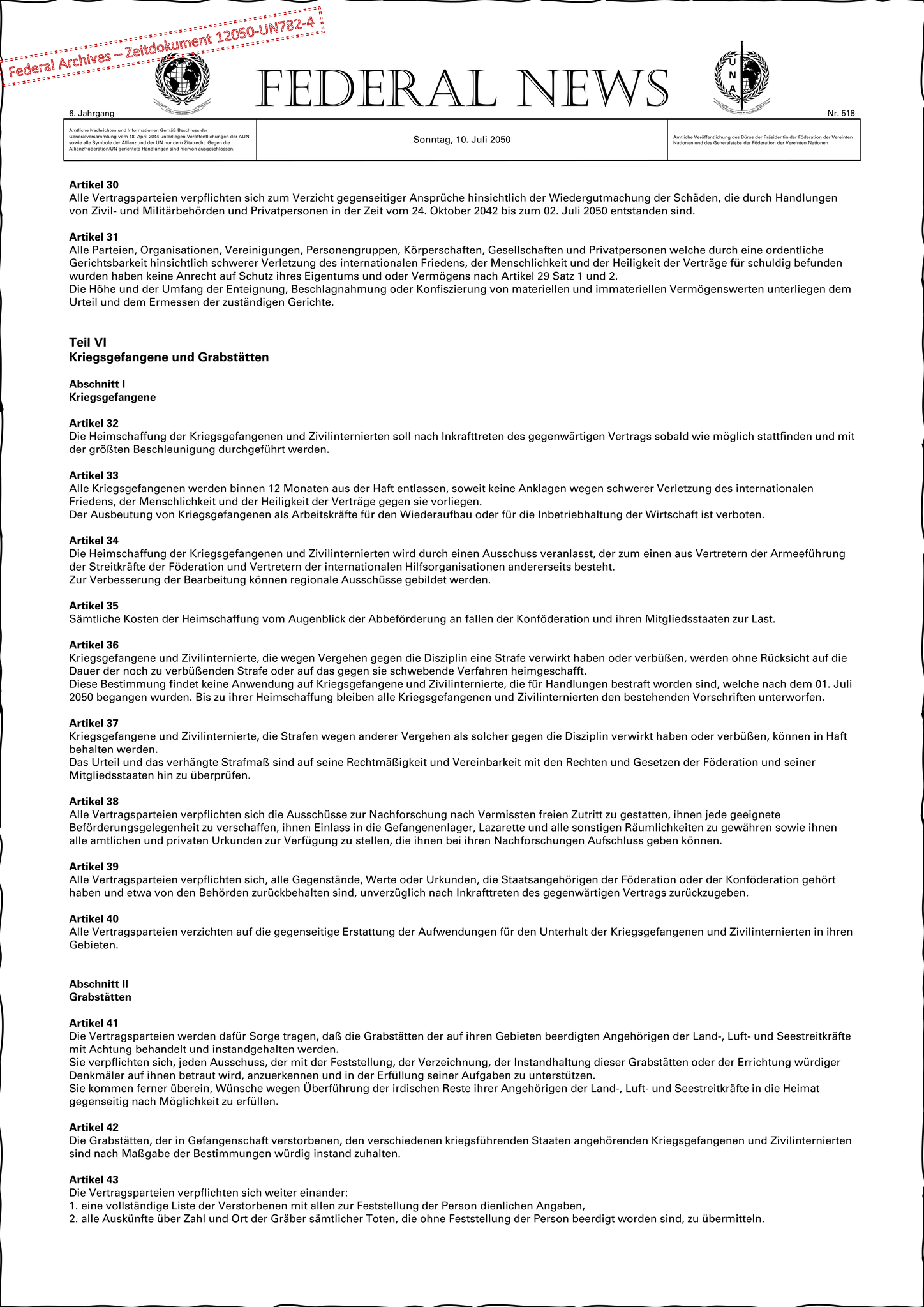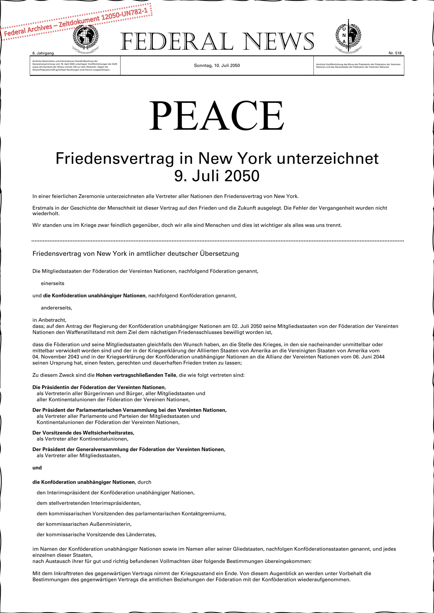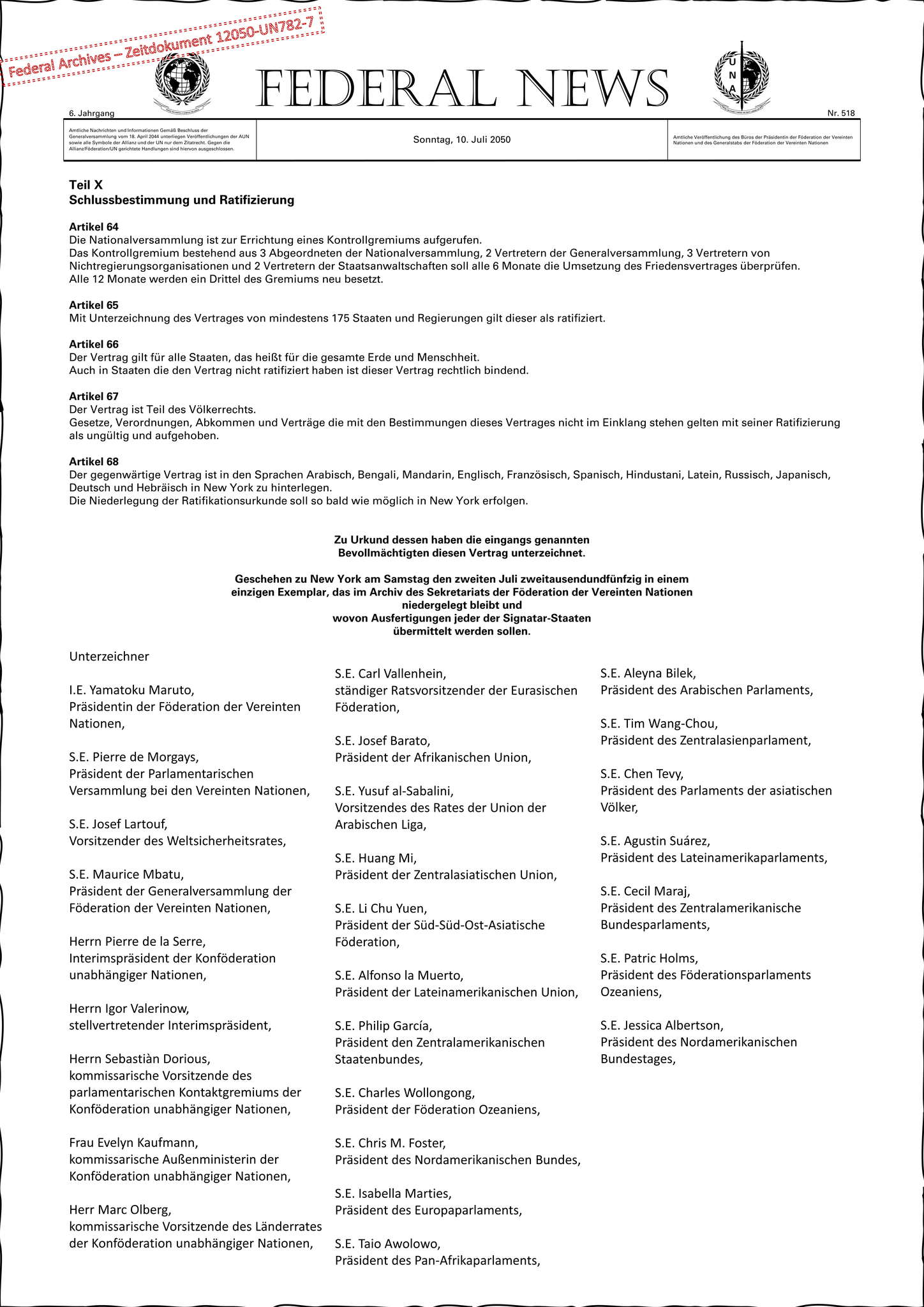 Federal Archives bietet eine Auswahl an Zeitdokumenten, in Form von Bekanntmachungen und Pressemitteilungen, aus den Jahren 2042 bis 2111.