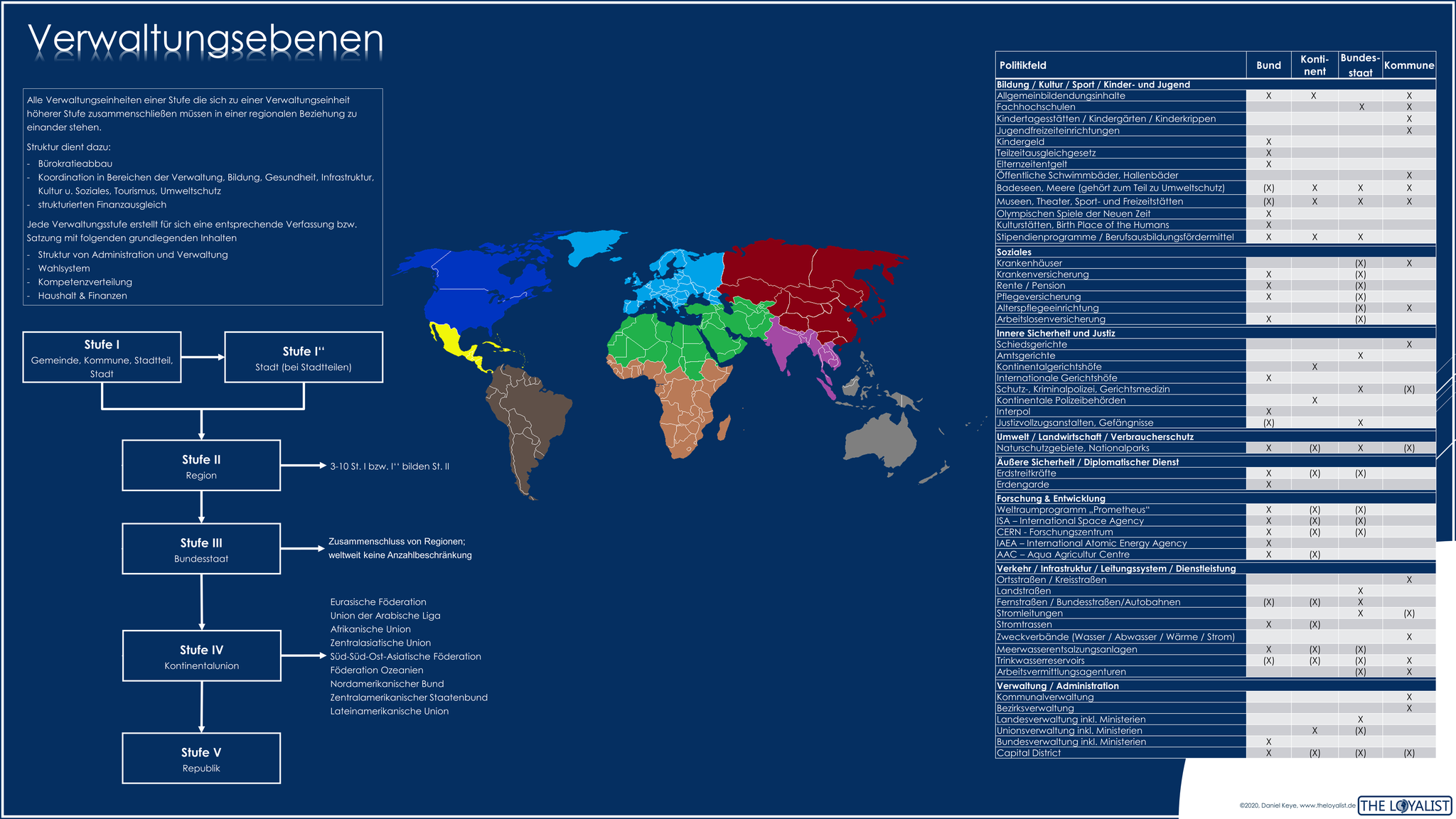 Errichtet auf dem Fundament des Menschenrecht und den Idealen der Demokratie folgend, sollte eine globale Republik sollte den Menschen mehr in den Mittelpunkt stellen und ihm die größtmögliche Macht geben.